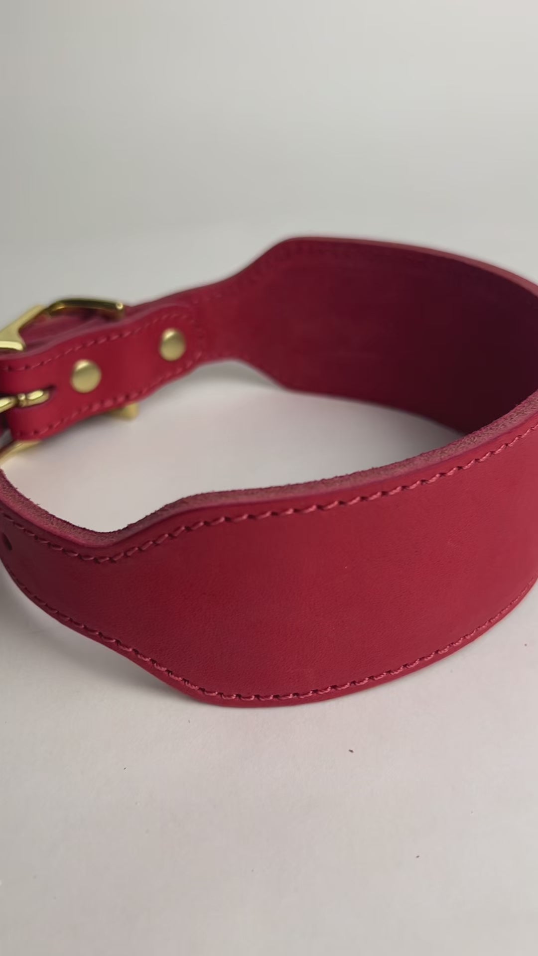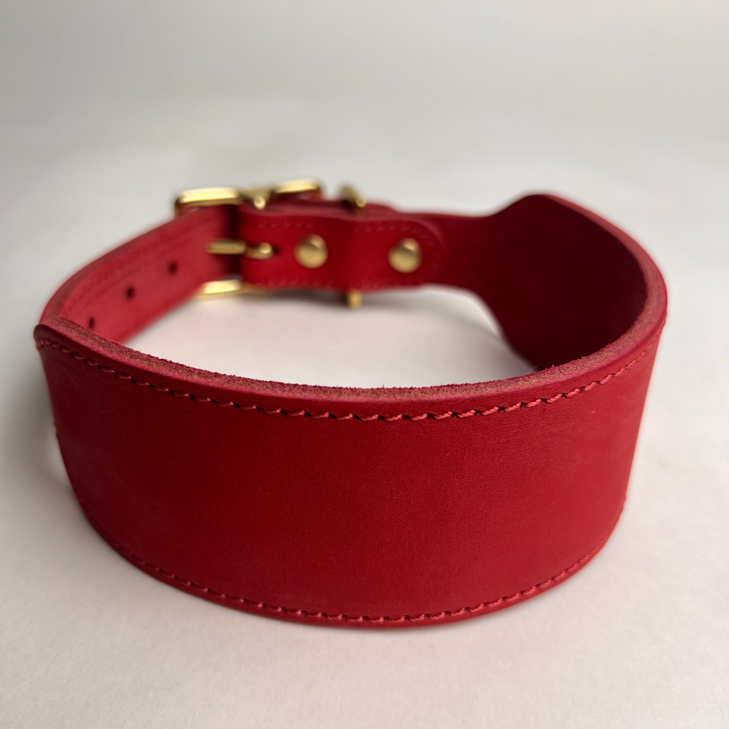 Premium Wide Leather Greyhound Collar – Full Grain Cowhide Dog Collar with Solid Brass Hardware