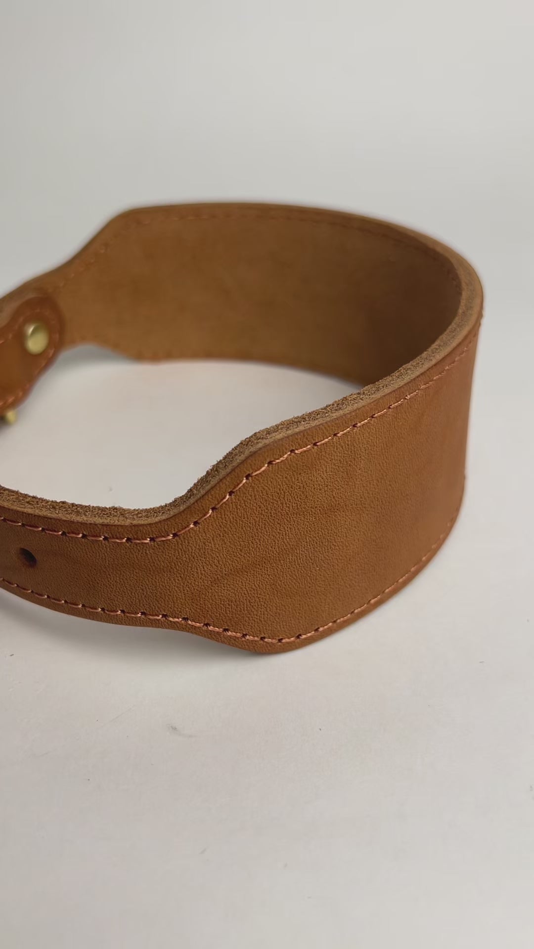 This wide greyhound collar is made from one piece of thick full-grain leather (4.5mm), offering strength and comfort without bulk.