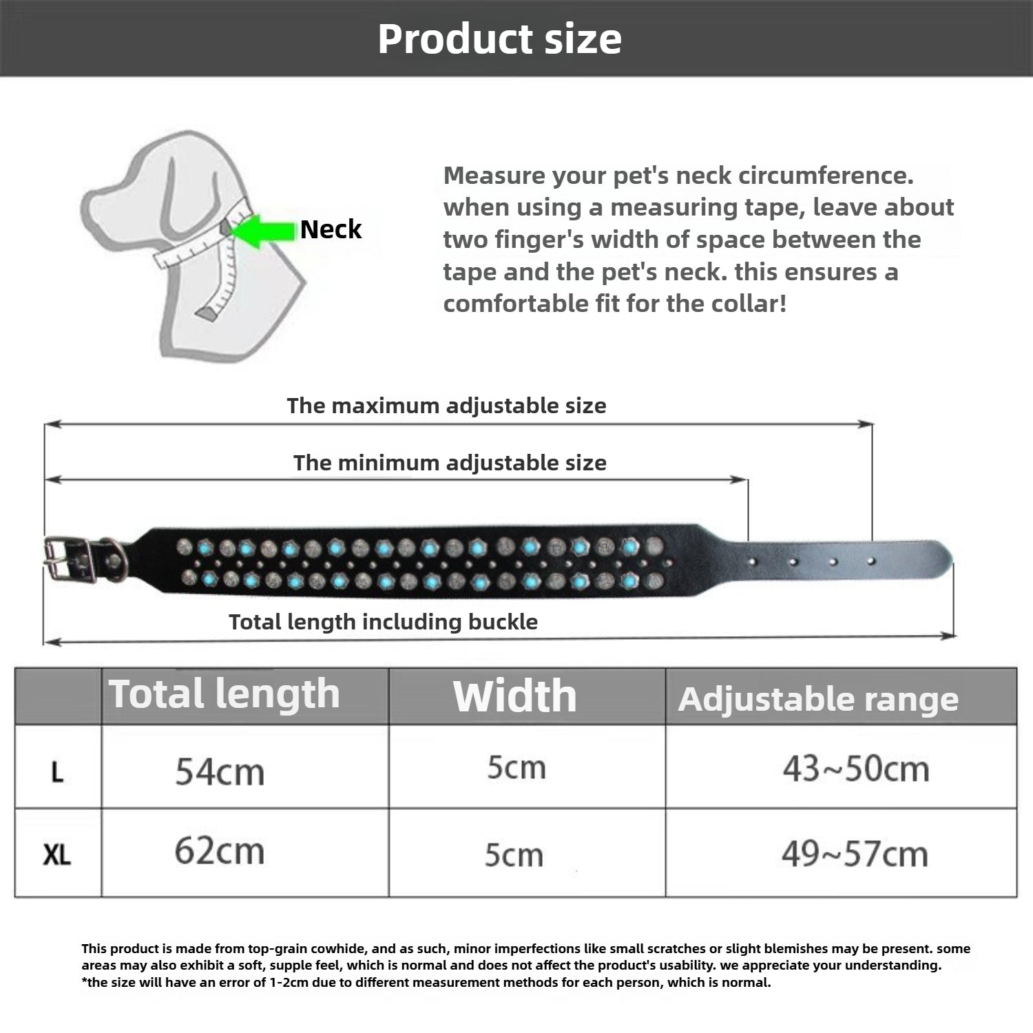 Retro genuine leather dog collar, punk style soft leather willow nail collar for bulldogs, Rottweiler German Shepherds