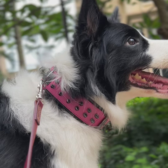 Built for strength and style, this wide studded leather dog collar is perfect for large breeds.